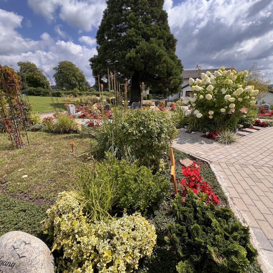 - Örtlichkeit und Lage: Der Memoriam-Garten auf dem Friedhof in Quierschied ist eine moderne und besondere Form der Grabgestaltung, die sich deutlich von traditionellen Gräberfeldern abhebt. Seine Einzigartigkeit liegt im Konzept eines parkähnlichen, gärtnerisch komplett versorgten Gedenkortes. Statt einzelner, von Angehörigen gepflegter Gräber, finden sich hier harmonisch gestaltete Themengärten, in die sich die verschiedenen Grabarten für Urnen- und Erdbestattungen einfügen. Die gesamte Anlage an der Holzer Straße wird als eine zusammenhängende Landschaft gepflegt, was den Hinterbliebenen die Grabpflege vollständig abnimmt und einen Ort der Ruhe und Schönheit schafft, der zu jeder Jahreszeit einen würdigen Rahmen für die Erinnerung bietet.